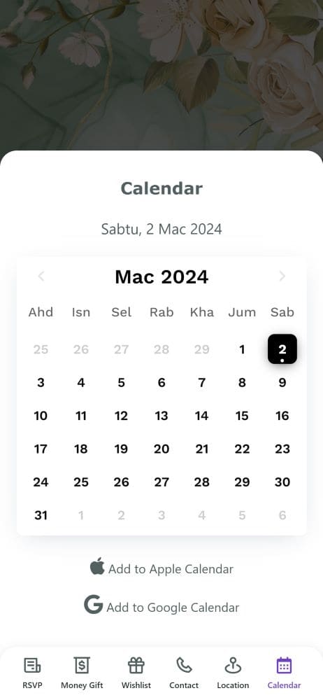 Simpan tarikh majlis sebagai peringatan di aplikasi kalendar