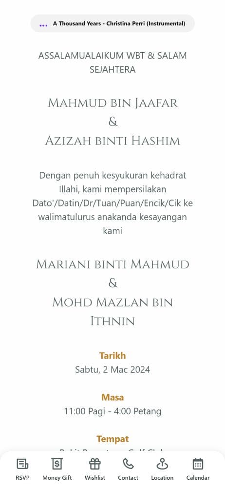 Kad kahwin digital kami dilengkapi dengan pelbagai fungsi yang menarik
