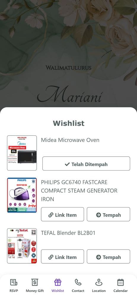 Tetamu boleh menghantar status kehadiran mereka kepada pihak majlis